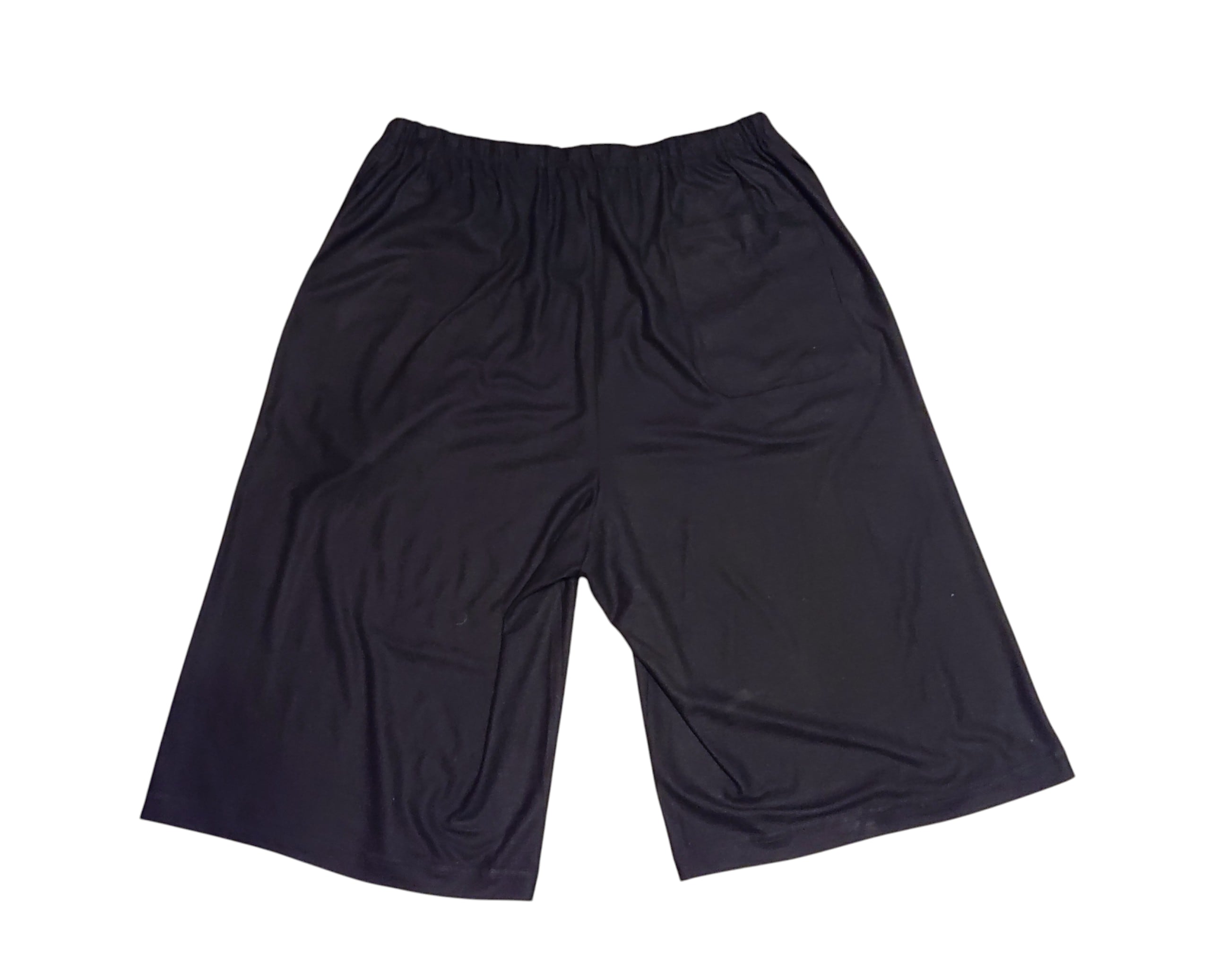 ヒップ周りにゆとりがあり裾幅の広い膝下丈ショートパンツ。