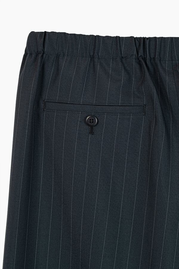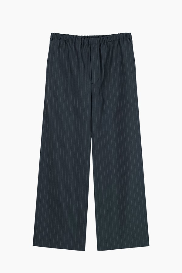 オリジナルの T/Wポプリンピンストライプ素材を使用したワイドストレートパンツ。