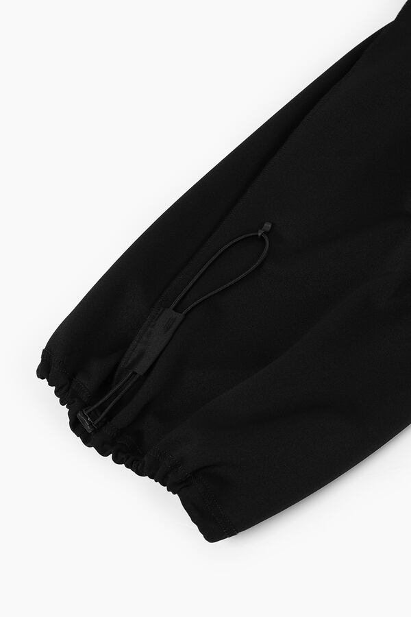 エステルジャージ素材を使用したストレートパンツ。