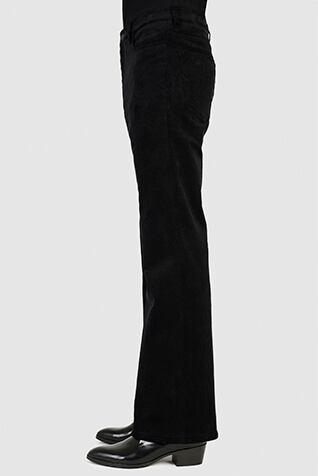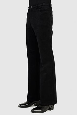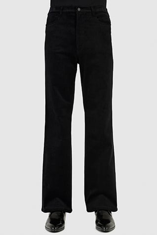ストレッチ性のあるコーデュロイ素材を使用したスリムフレアパンツ。