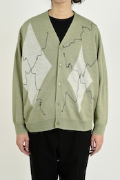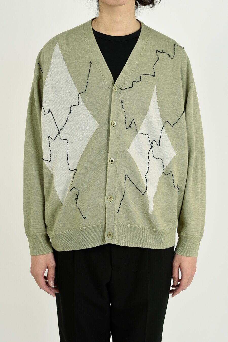 手書きのアーガイル柄をインターシャとハンド刺繍で表現しています。