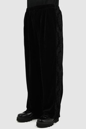 落ち着いた光沢のあるベロア素材を使用した2タックトラックパンツ。