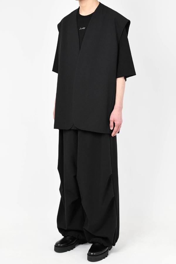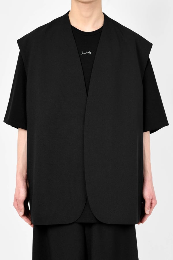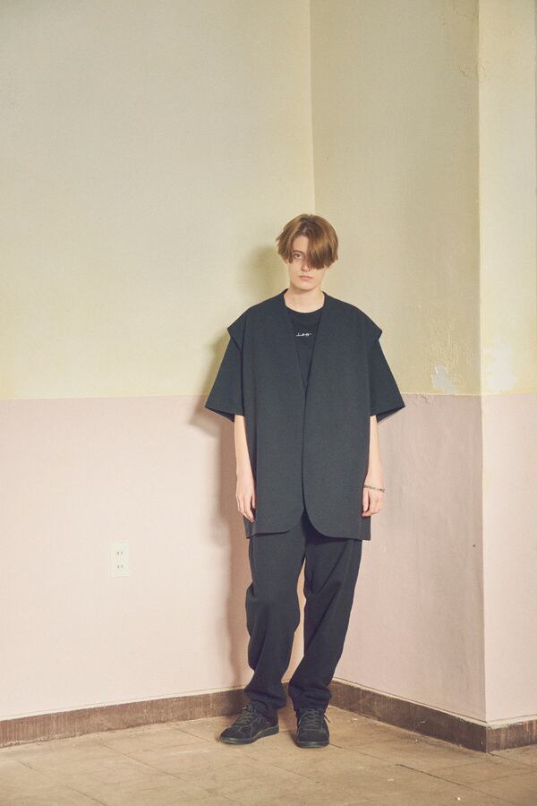カラーレスでボタンを排したミニマルなデザインが特徴のノースリーブジャケットです。