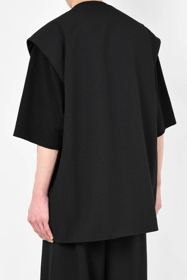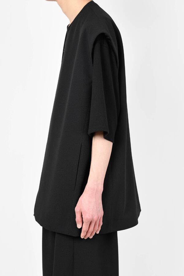上品な光沢を持つポリエステルトロピカル素材を使用したノースリーブジャケット。