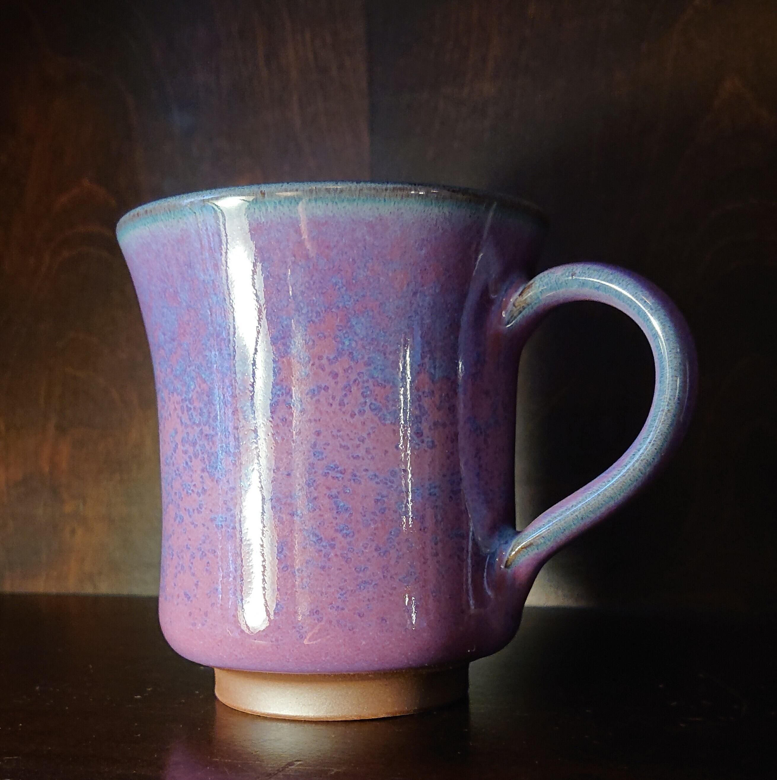 中国・宋代~元代に焼かれた※『鈞窯』。赤紫から青紫や水色と窯内の雰囲気によって様々に変化する。繊細で優美で気品があり高貴な発色と言われる。口当たりも良く取手も指が二本入りますので安定した持ち易さです。