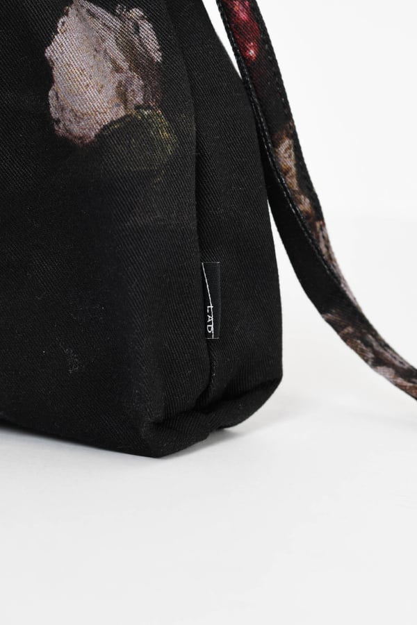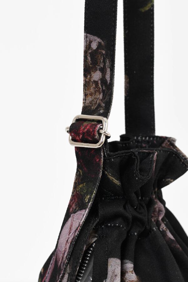 ミニマルなサイズの総柄ドローストリングバッグです。