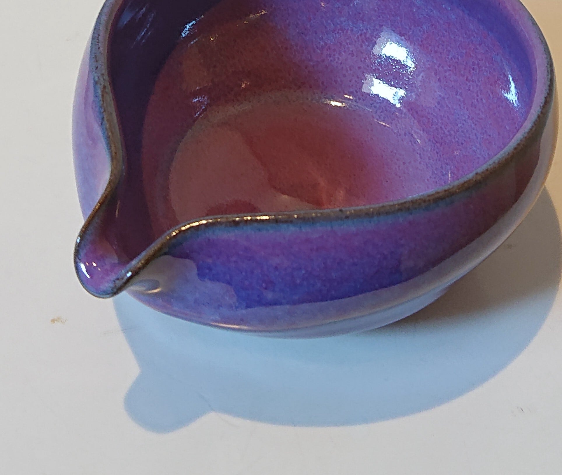 赤紫から青紫や水色と窯内の雰囲気によって様々に変化する。