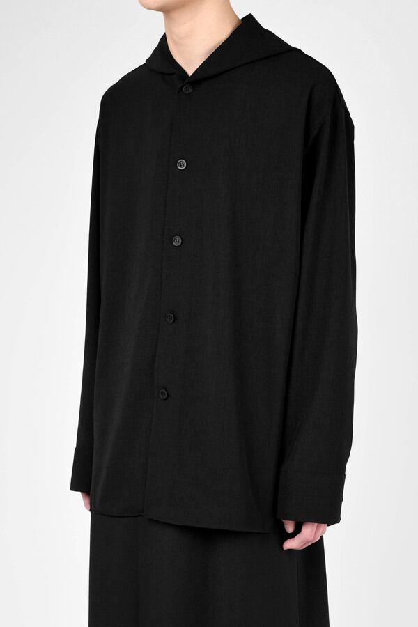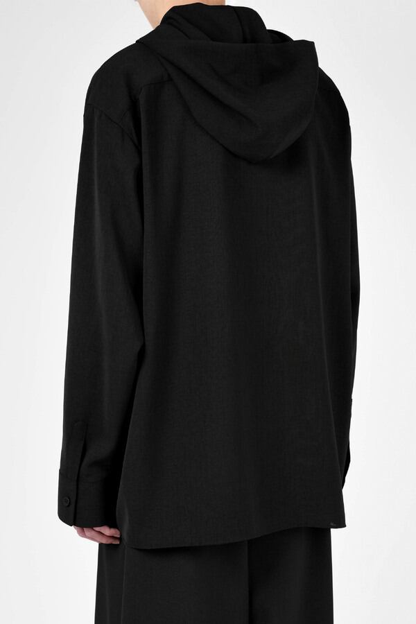スパンローン素材を使用したフーデッドビッグシャツ。