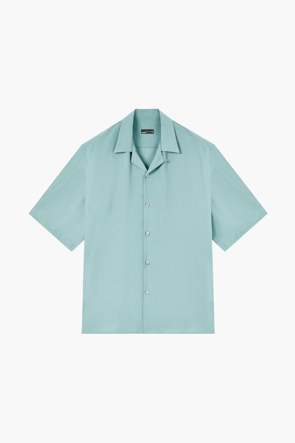 スパンローン素材を使用した半袖オープンカラーシャツ。