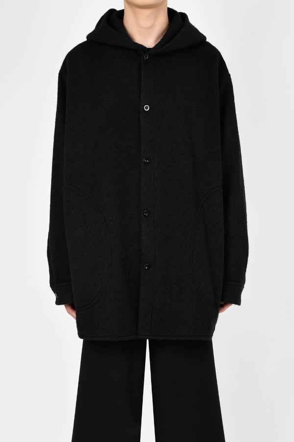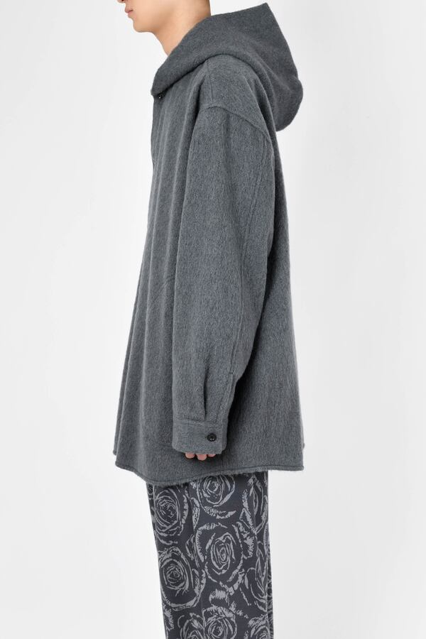 モヘアシャギー素材を使用したフーデッドシャツジャケット。