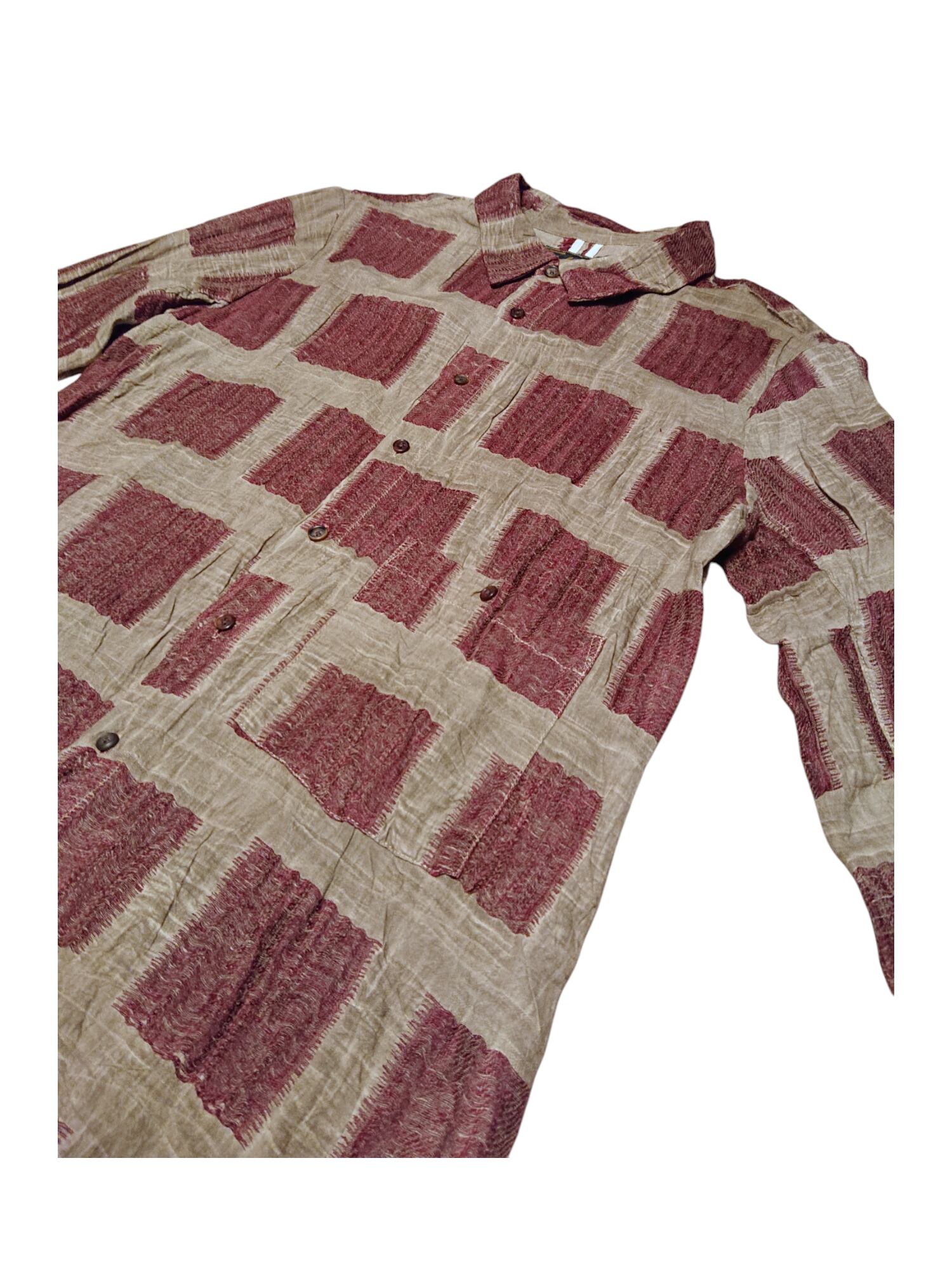 特徴的な柄はチェックのようでチェックではなく、色味と合わせて古い街並みの壁や街道のような印象を与える。新たなチェック柄としての雰囲気を醸し出している。